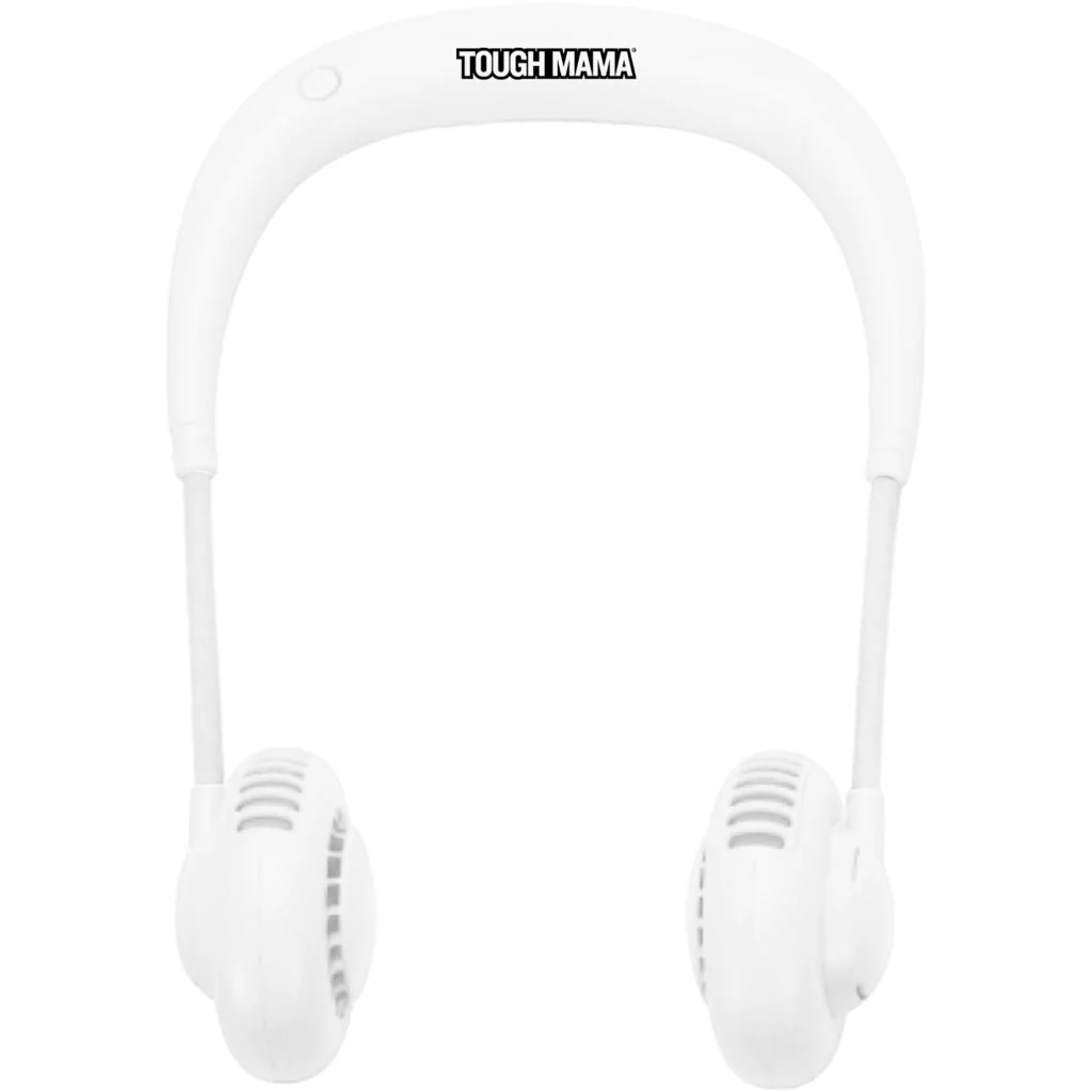 Tough Mama NTMRNKF Rechargeable Leafless Hanging Neck Fan Electric Portable Mini Powerful White Pink