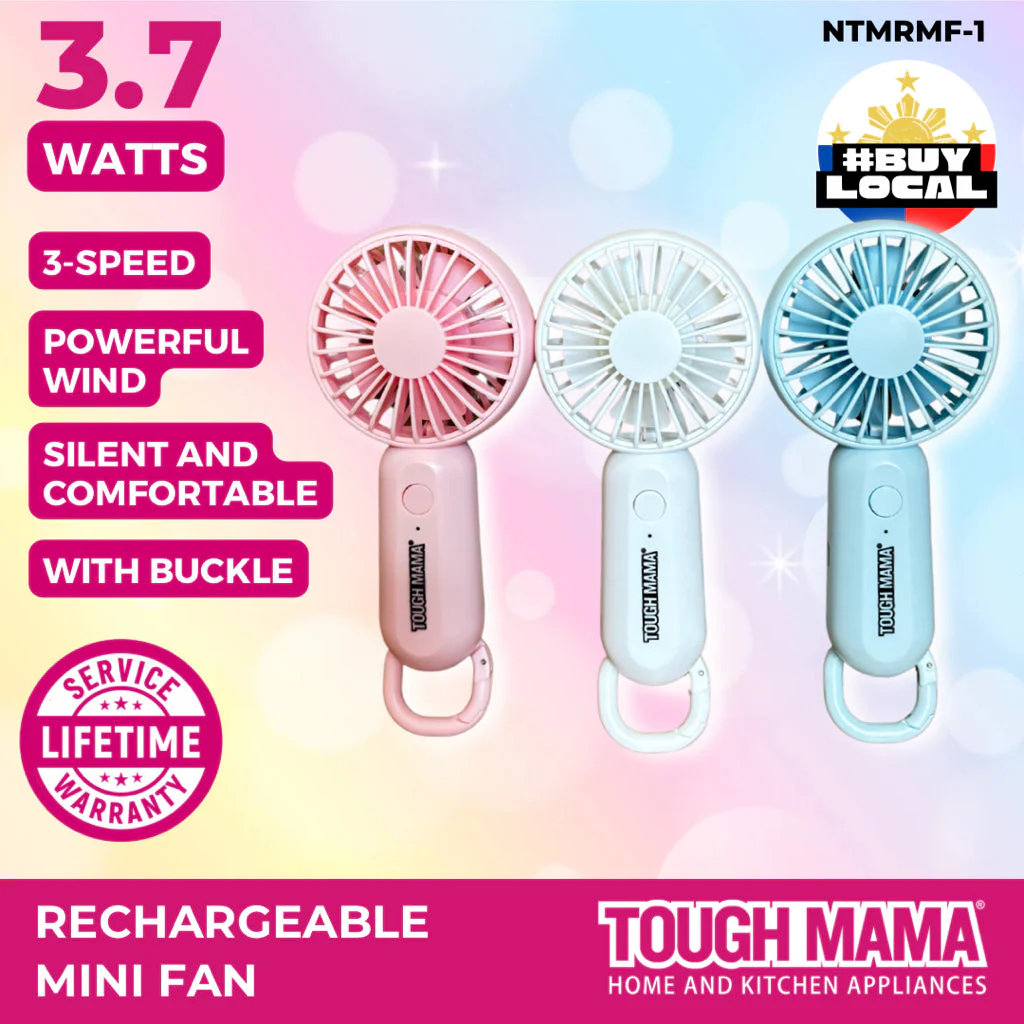 Tough Mama NTMRMF-1 Rechargeable Mini Hand Fan Pastel Color Keychain Pink, White, Blue Powerful
