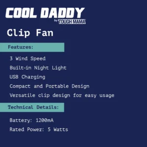 Cool Daddy by Tough Mama Clip Fan CDCF-7 Compact and Portable USB with Built-in Night Light
