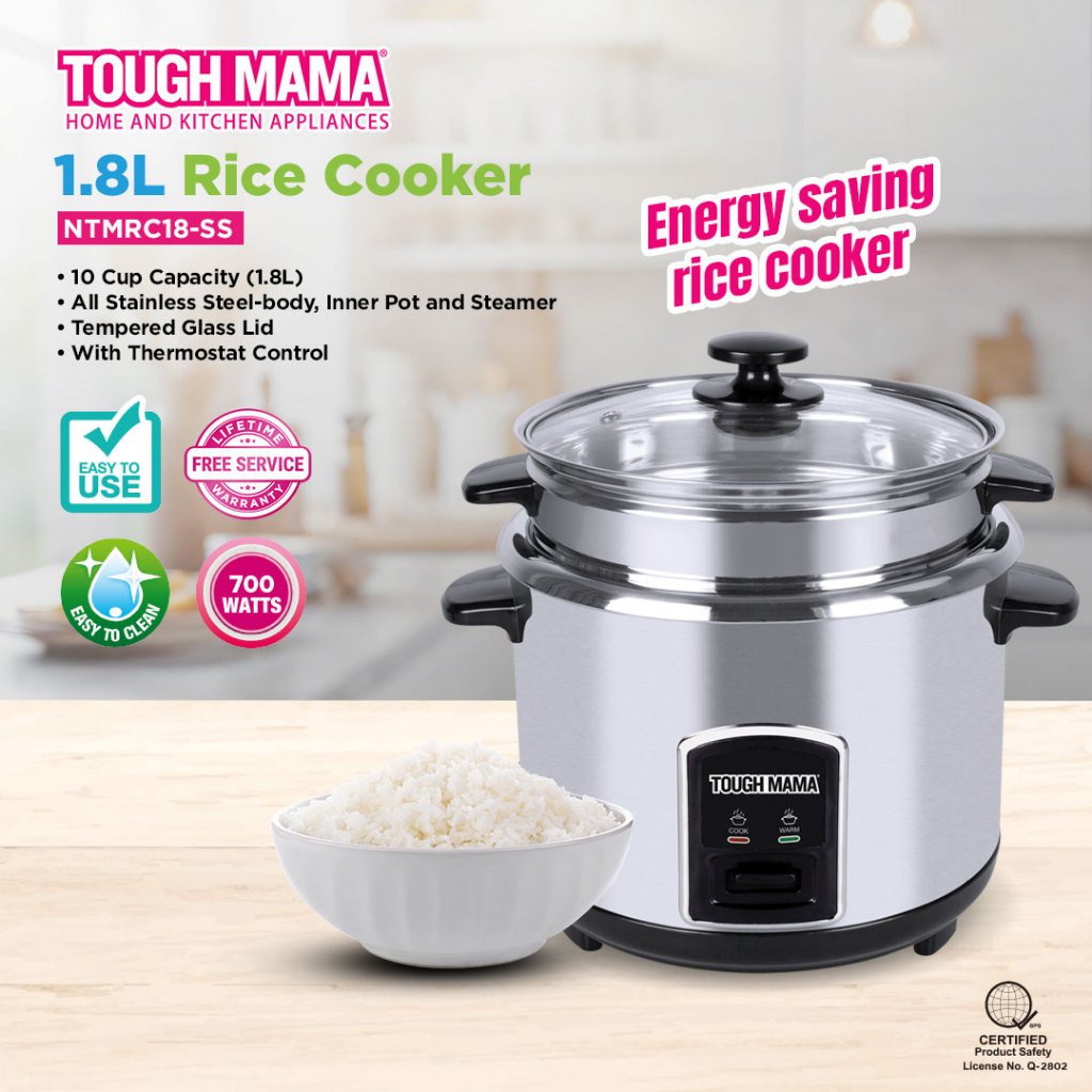 / Tough Mama NTMRC1-SS 5 cups- 5in1 Rice Cooker – Pure Stainless w/ Steamer