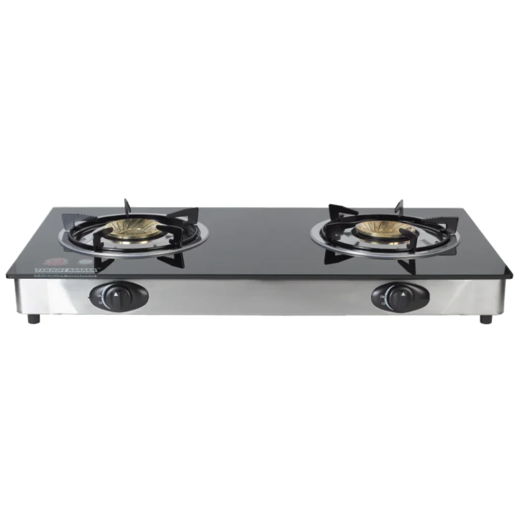 Tough Mama NTMGHB-2 Glass Hob Double Burner Gas 3mm Trivet Black Stove Auto-Ignition